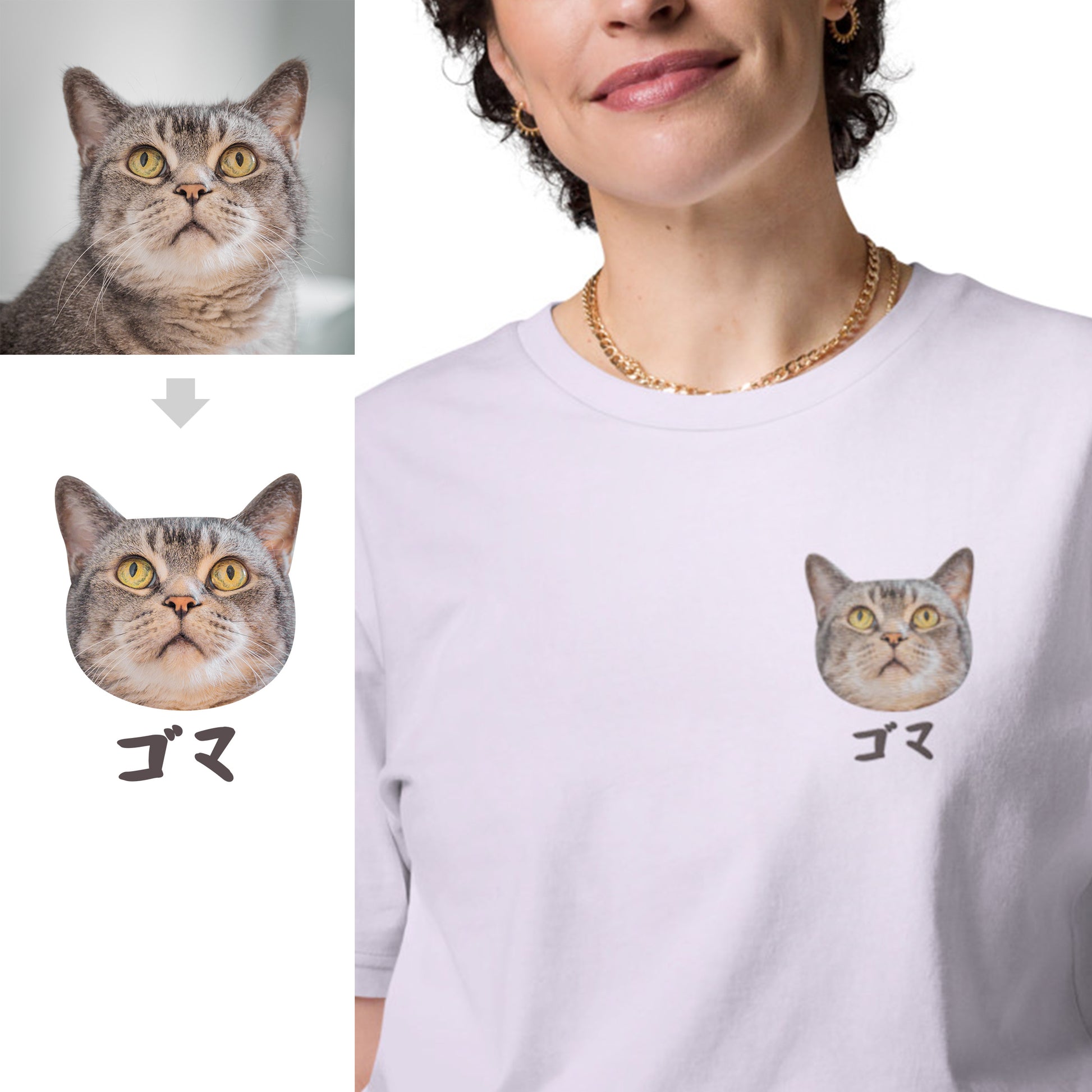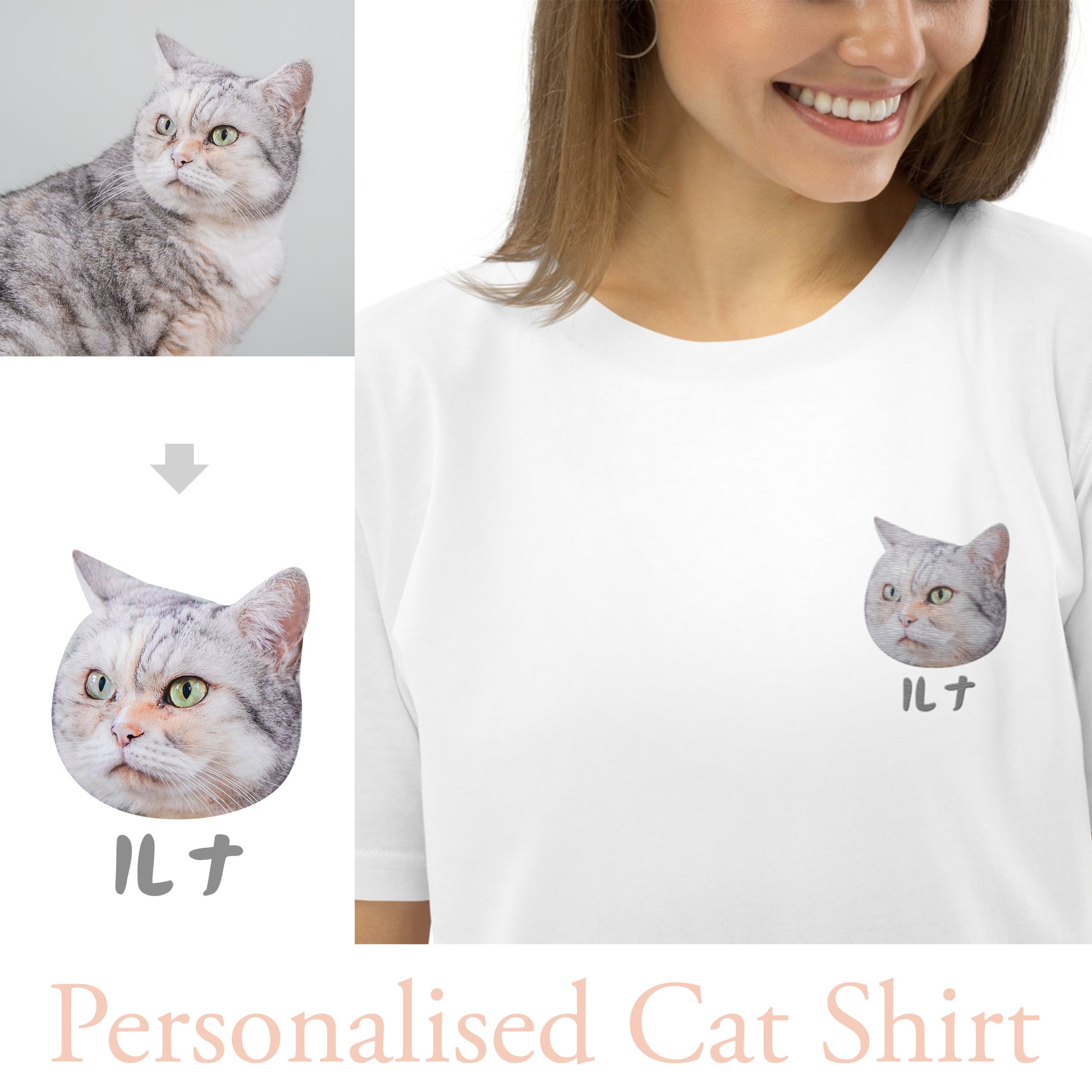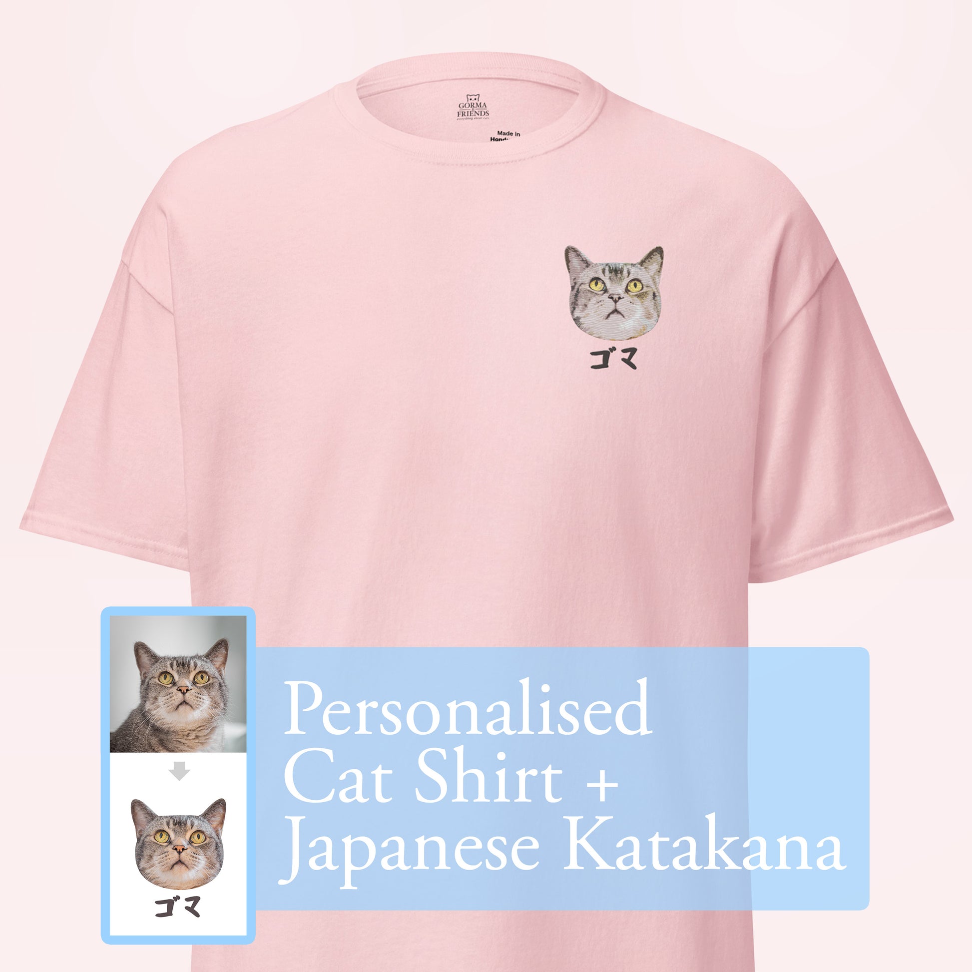 Personalised Embroidery Shirt with Cat & Japanese Katakana