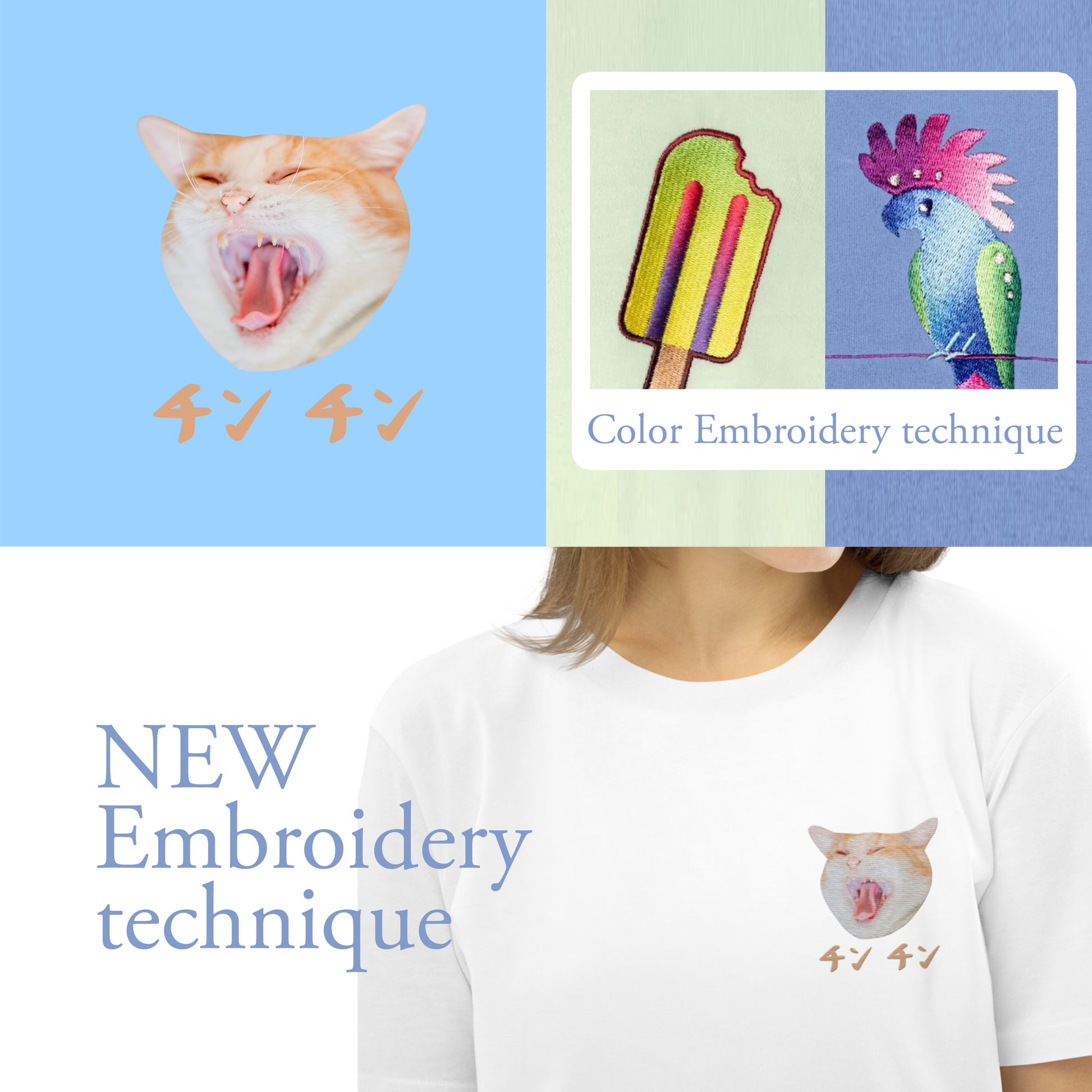 With new embroidery tech, the image will have much more vibrated colours than the traditional ones! Make the unique shirt with your cat, so that it could go around anywhere with you :)
